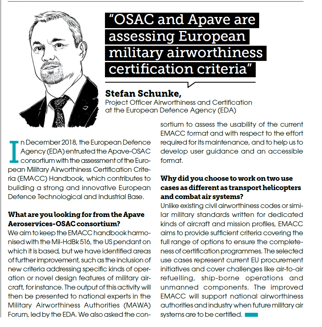 Téléchargez l'interview de Stefan Schunke (responsable de projet navigabilité et certification à l'Agence européenne de défense) : Interview de Stefan Schunke